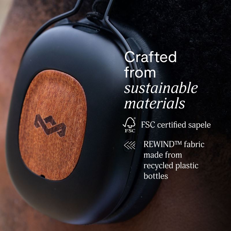 Sluchátka jsou vyrobena z FSC™ certifikovaného dřeva, recyklovaného hliníku a prémiových tkanin, což podtrhuje jejich udržitelný charakter.