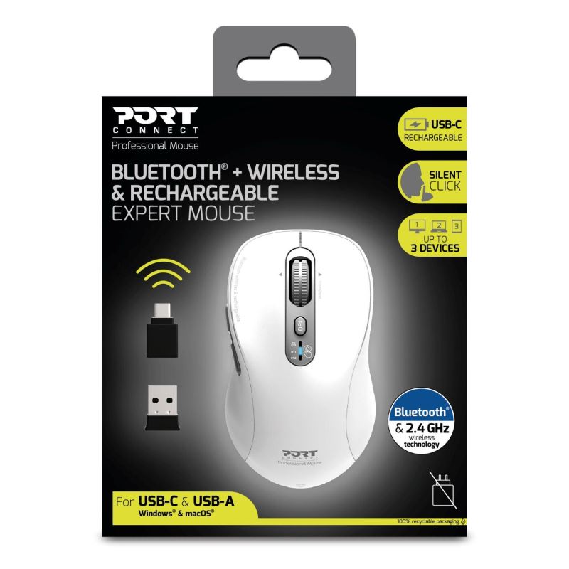 PORT CONNECT EXPERT, Bluetooth a 2,4GHz bezdrátová nabíjecí myš, USB-C, bílá