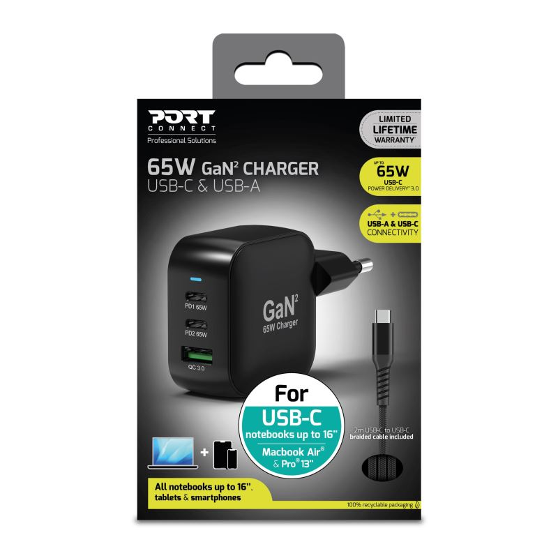 PORT CONNECT GaN2 - Výkonná 65W GaN2 nabíječka pro notebooky až do 16", MacBook Air & Pro, tablety i smartphony.