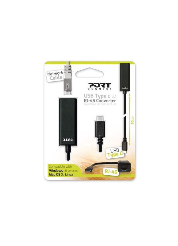 PORT CONNECT konvertor z USB-C do RJ-45, kabel 30cm