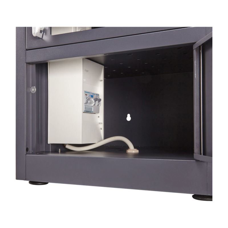 V horní technické části se nachází zabezpečený prostor s integrovaným jističem, který chrání elektrickou instalaci skříně.