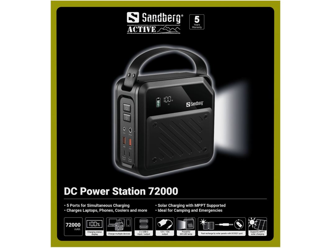 Sandberg DC Power Station 72000 je výkonná přenosná nabíjecí stanice, která představuje ideální řešení pro kempování, cestování i nouzové situace.