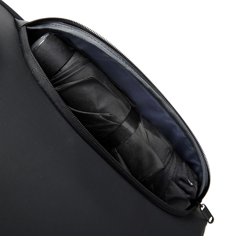 K dispozici jsou dvě uzavíratelné přední kapsy pro drobnosti a speciální uzavřená přihrádka na deštník.