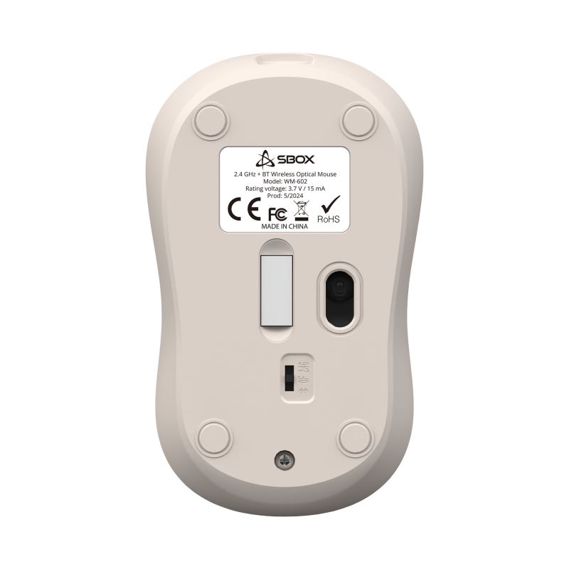 SBOX bezdrátová myš, 4D, 1600 DPI, dobíjecí baterie, béžová (WM-602BE)