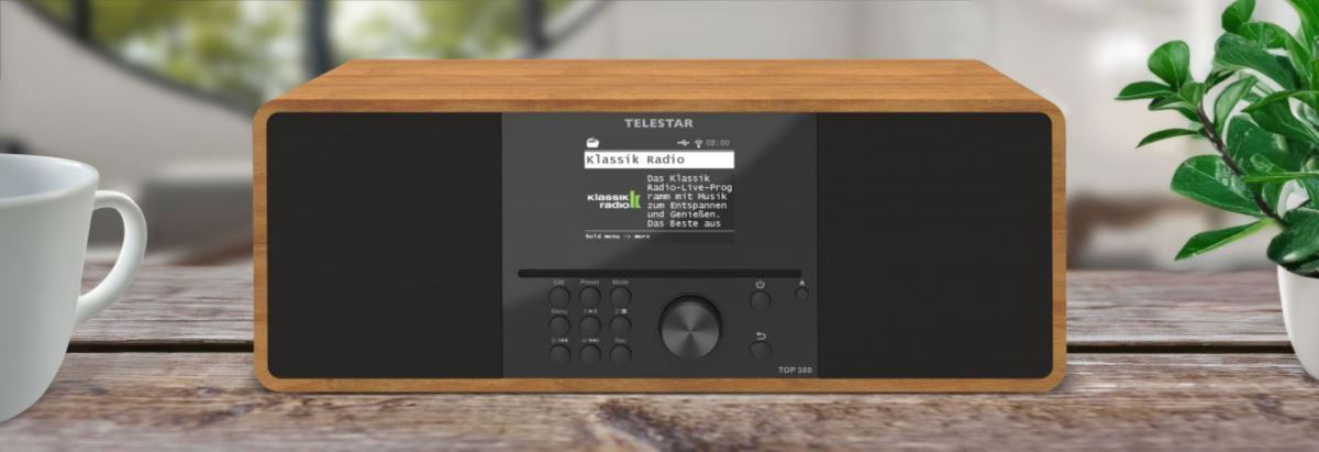 Telestar TOP 300 kombinuje digitální rádio DAB+, příjem FM, internetové stanice a CD přehrávač v jednom zařízení.