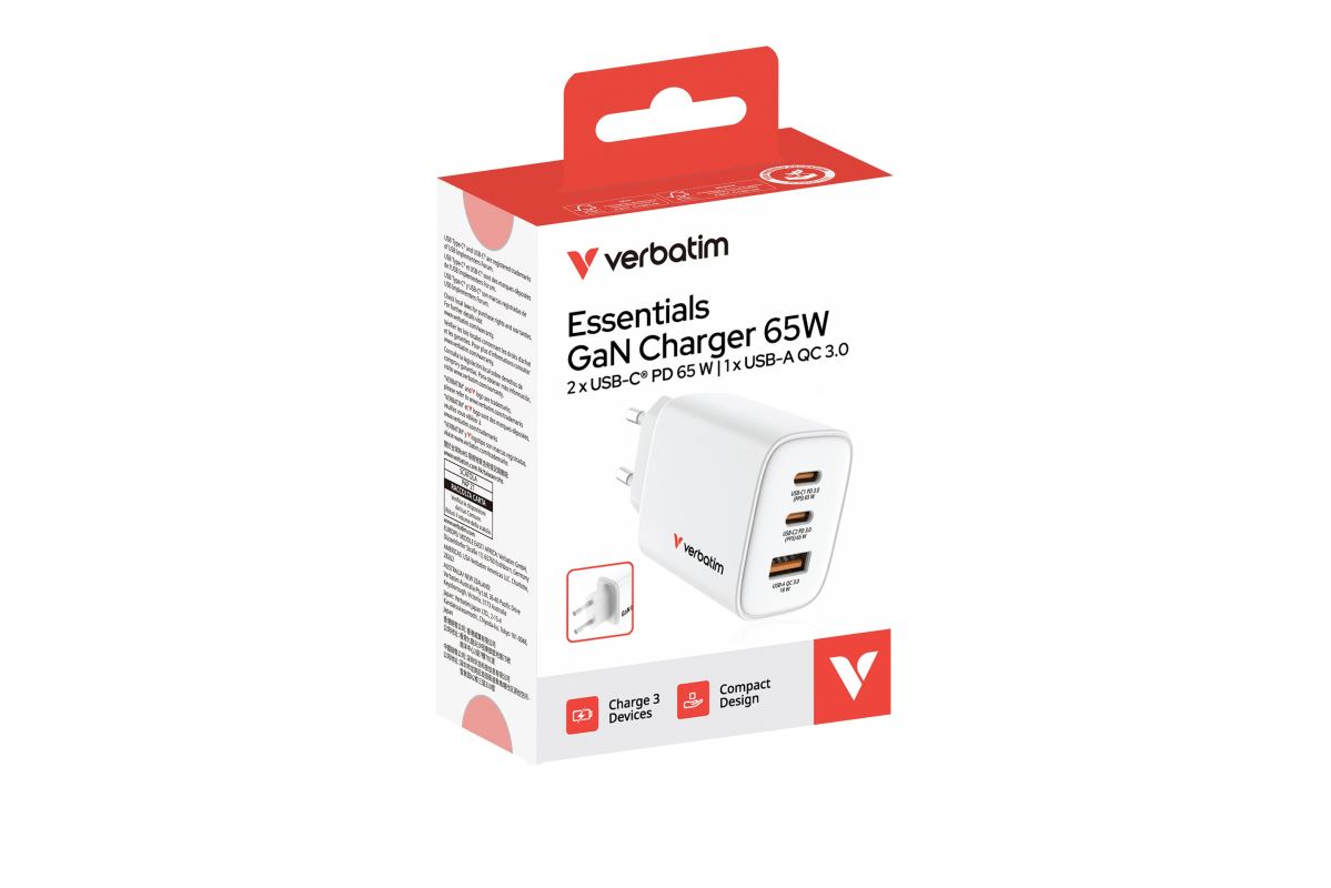 - Verbatim GaN cestovní adaptér Essentials 65W, bílá