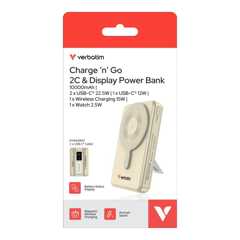 Verbatim magnetická bezdrátová powerbanka Charge 'n' Go C+C, displej, 10000 mAh, zlatá