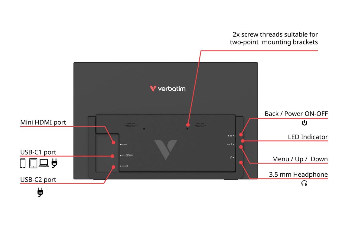 Verbatim PMT-15 Přenosný dotykový monitor 15,6" Full HD 1080P, černá