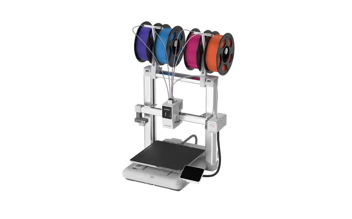 The multi-filament system enables native printing with 4 colors, with the configuration expandable up to 19 colors.