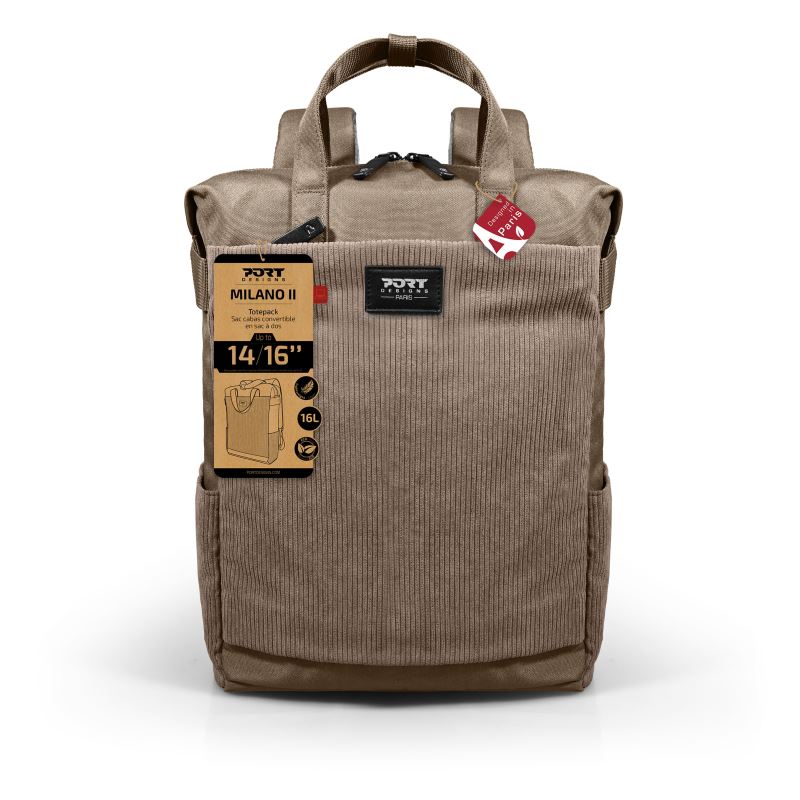 PORT DESIGNS MILANO II ECO TOTEPACK, backpack for NB 14–16", desert brown