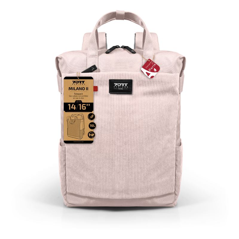 PORT DESIGNS MILANO II ECO TOTEPACK, backpack for NB 14–16", blush pink
